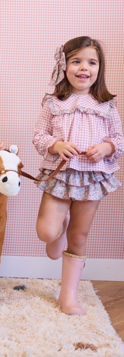 Conjunto de niña compuesto de braguita flores combinado con camisa vichy