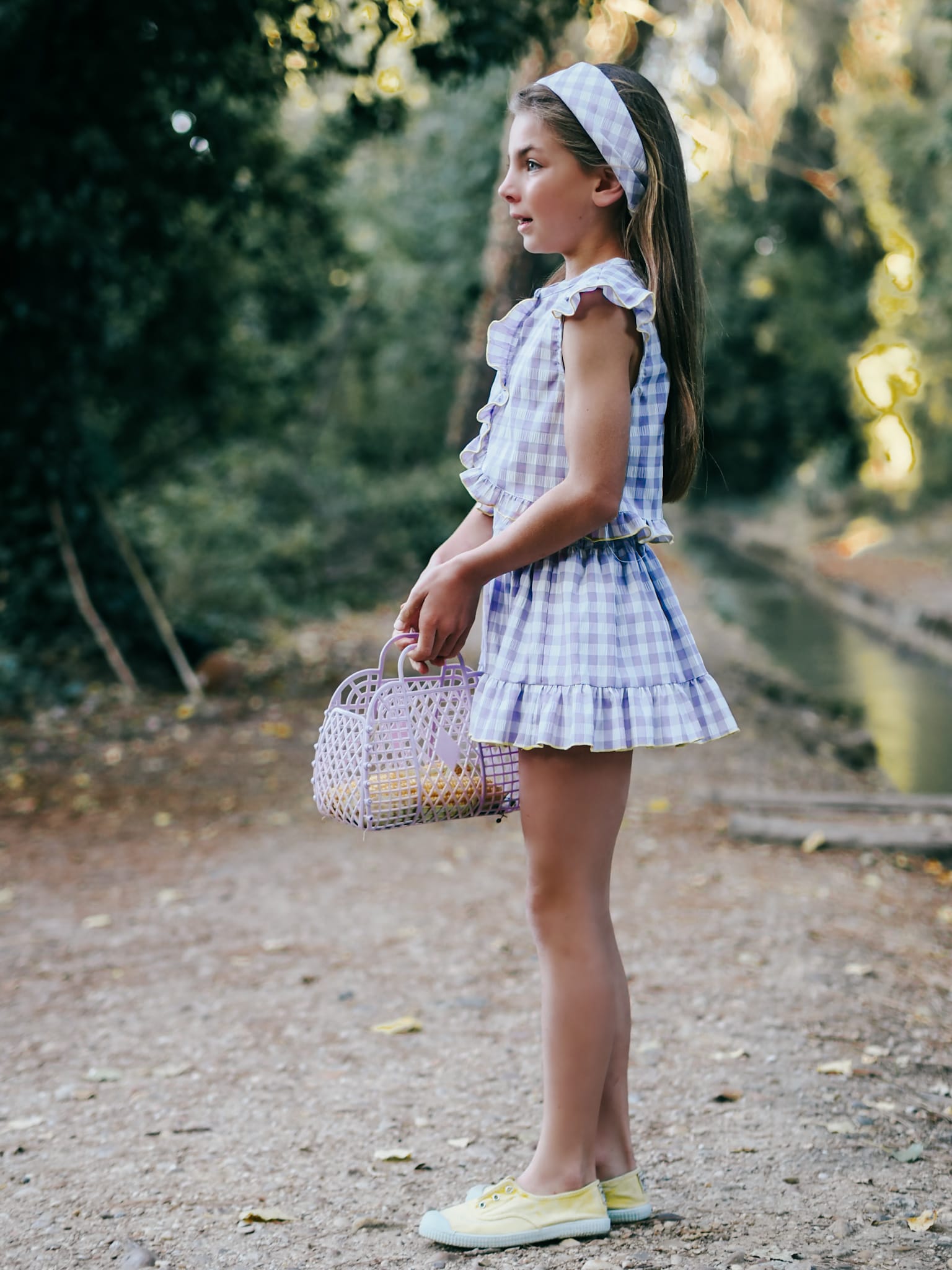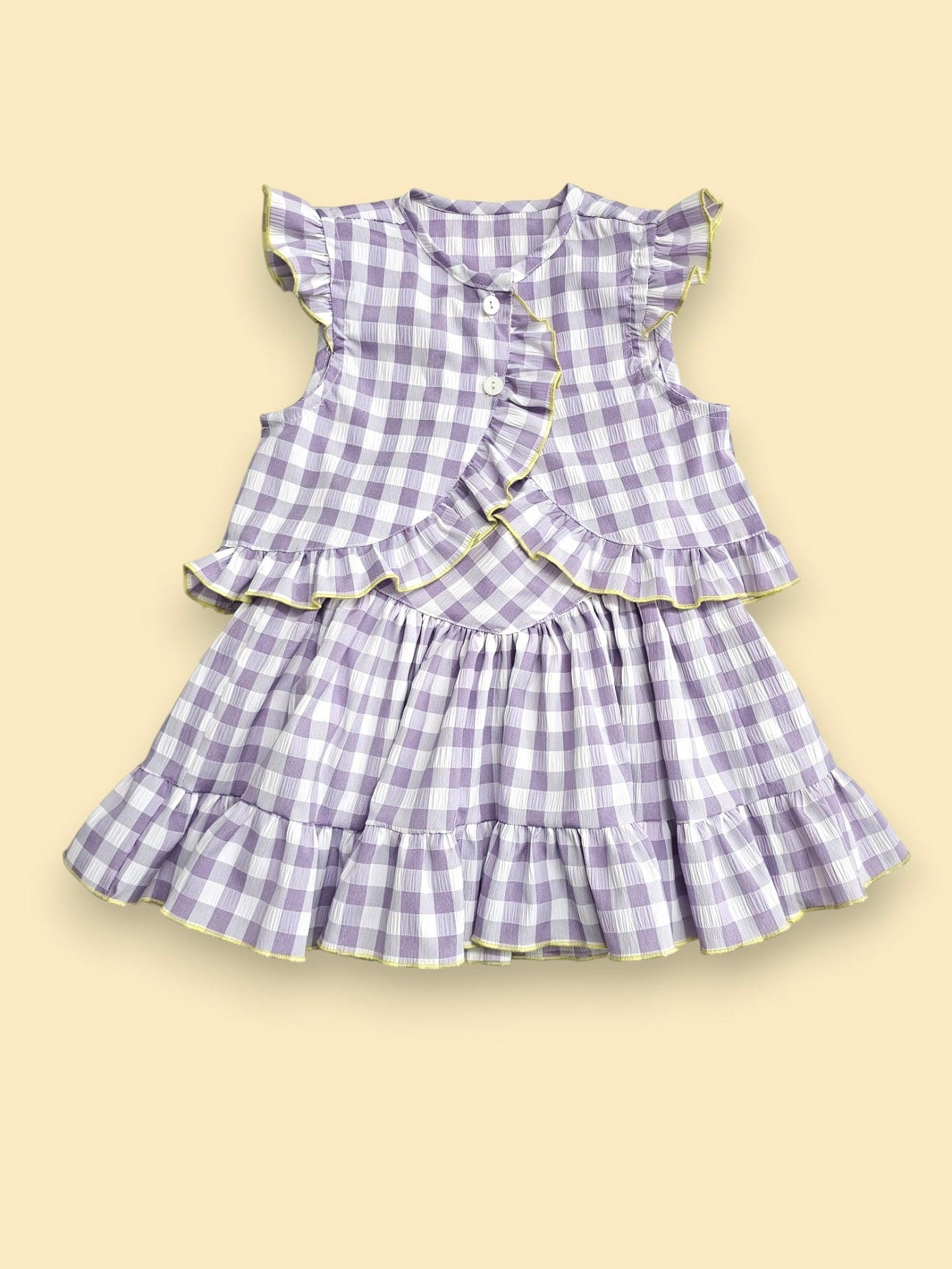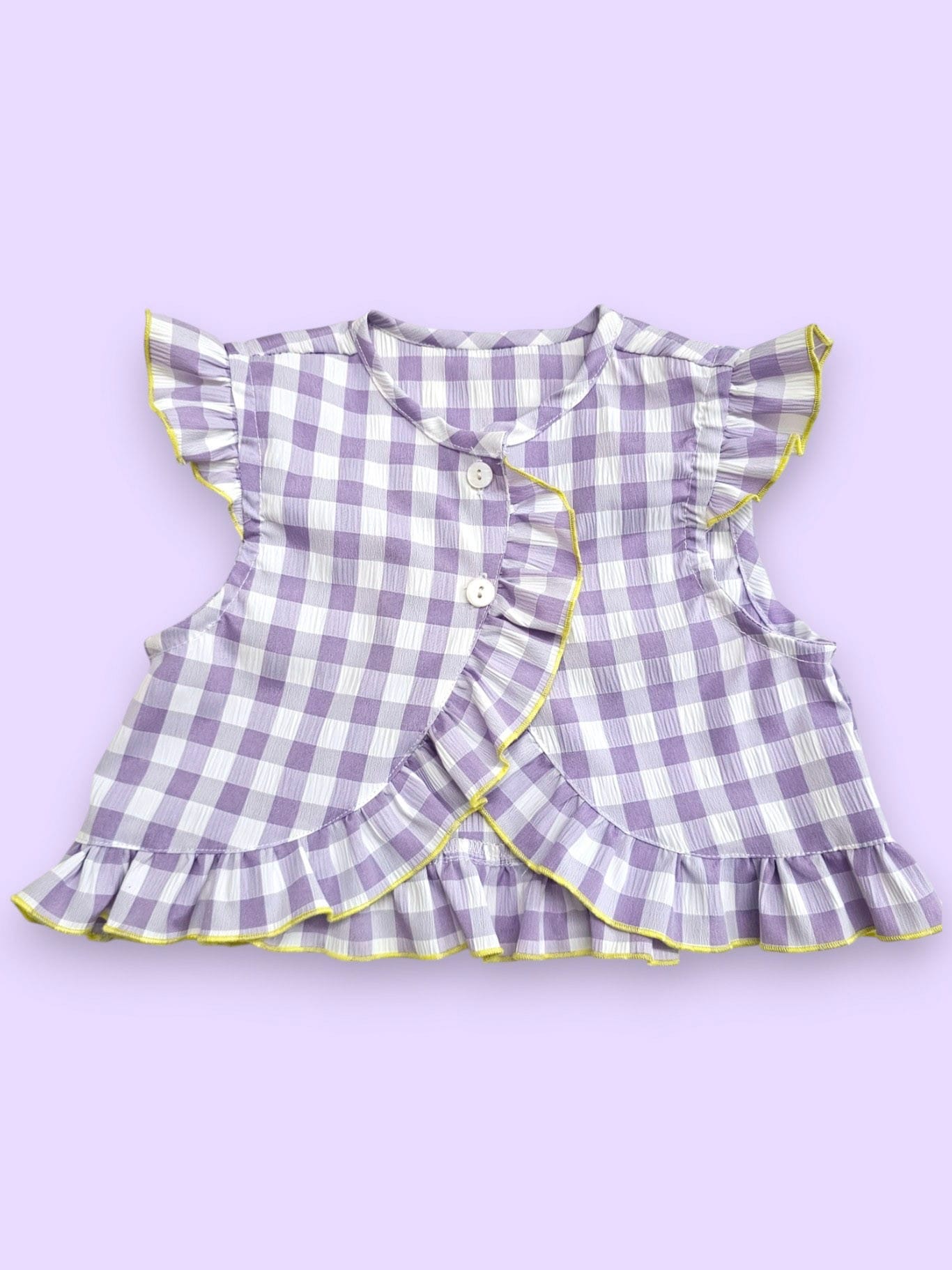 Conjunto de niña compuesto de blusa más falda vuelo en cuadros lila