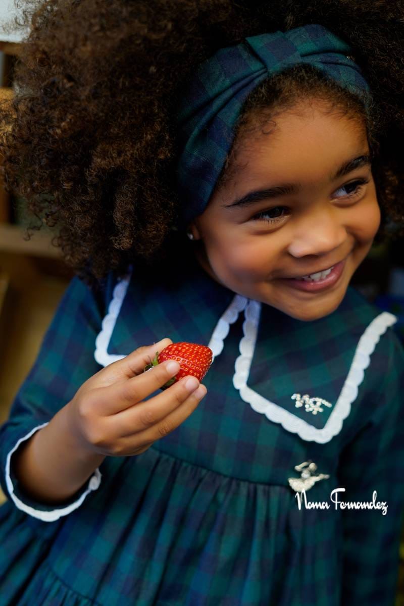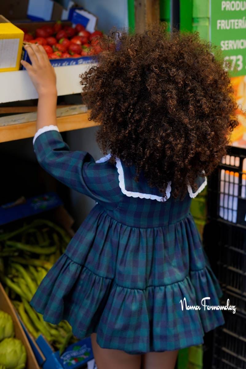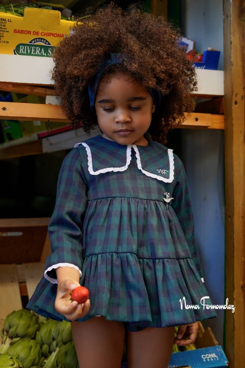 Jesusito más braguita en tejido vichy marino y verde , cuello solapa cuadrado rematado con puntilla blanquita