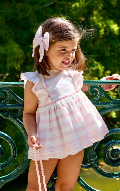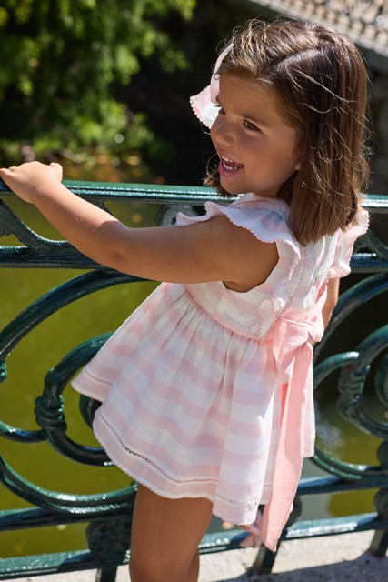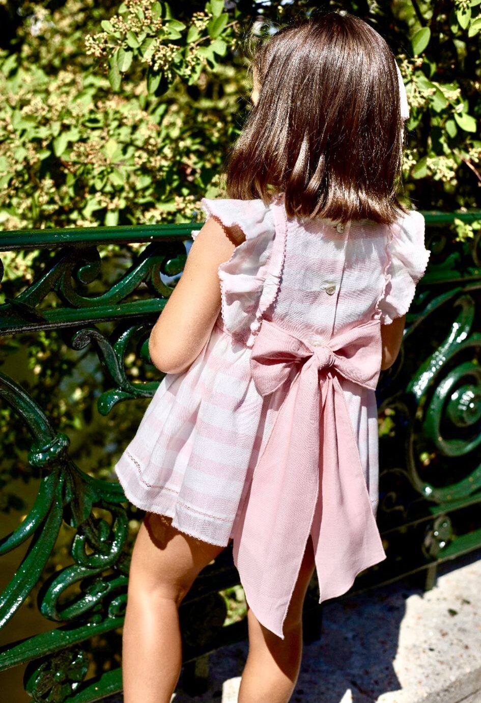 Jesusito más braguita en tejido rayas abotonado en la espalda mas lazote en color rosa