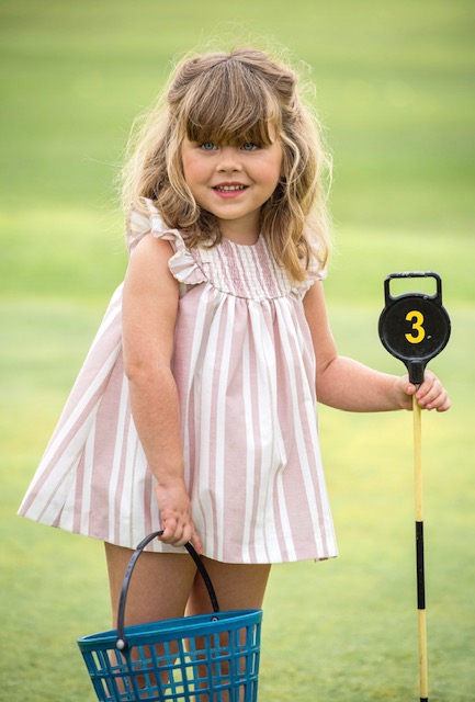 Jesusito más braguita en tejido rayas rosa con nido de abeja en el pecho y lacitos en los hombros