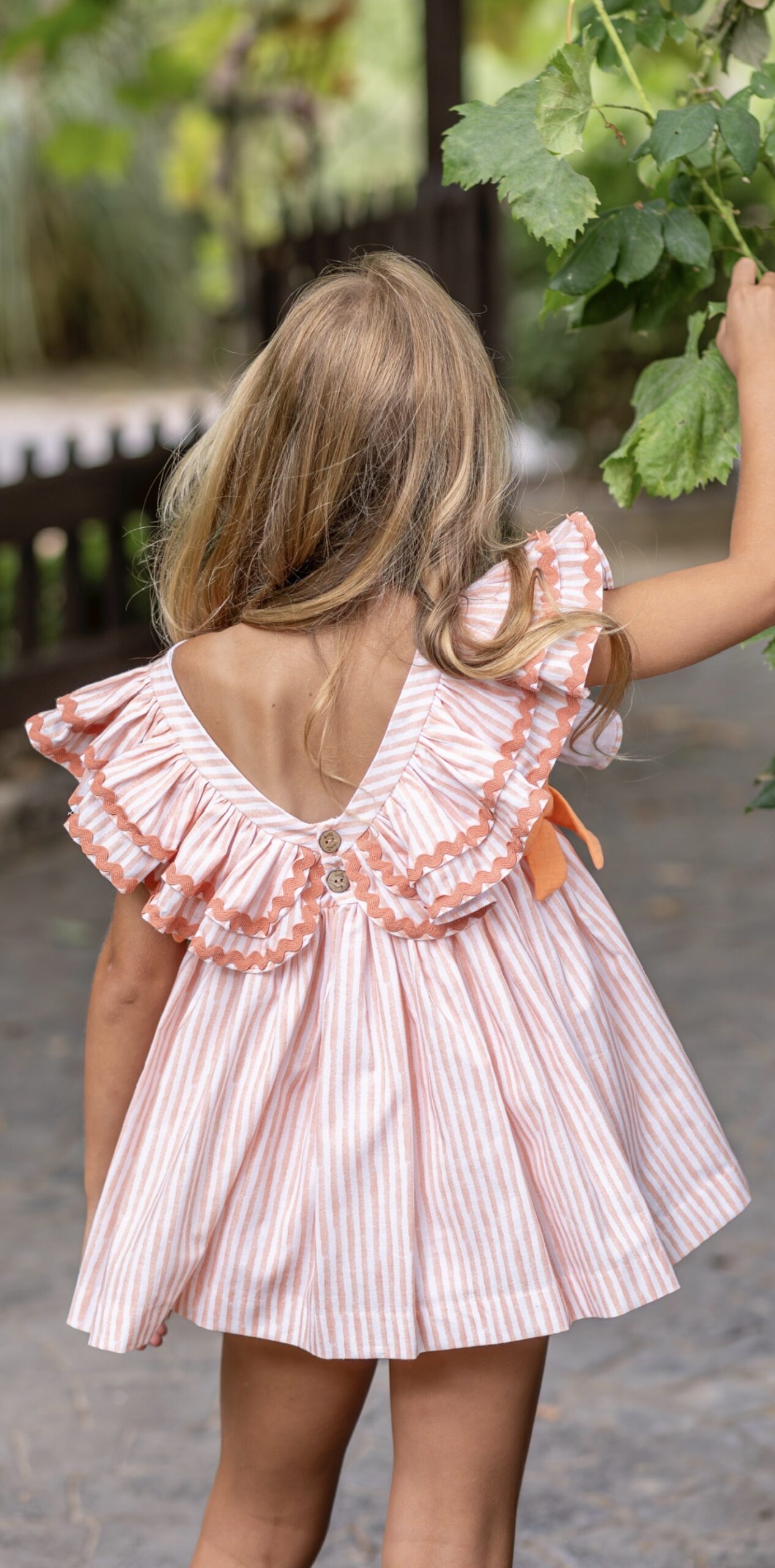 Jesusito más braguita en rayas naranja abotonado en la espalda y lazos a los lados combinados en naranja