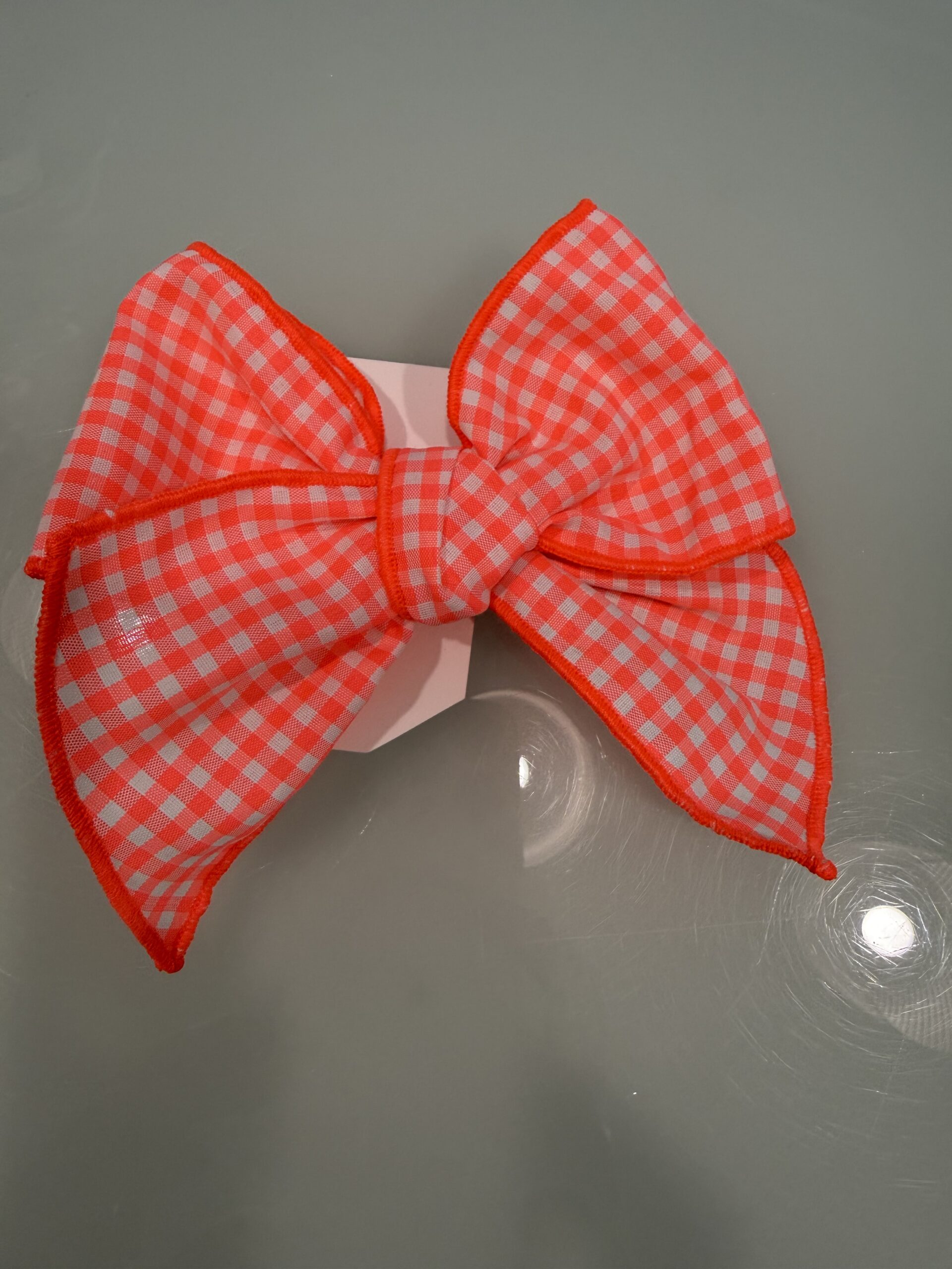 Lazo en tamaño mediano en tejido vichy fluor con pinza