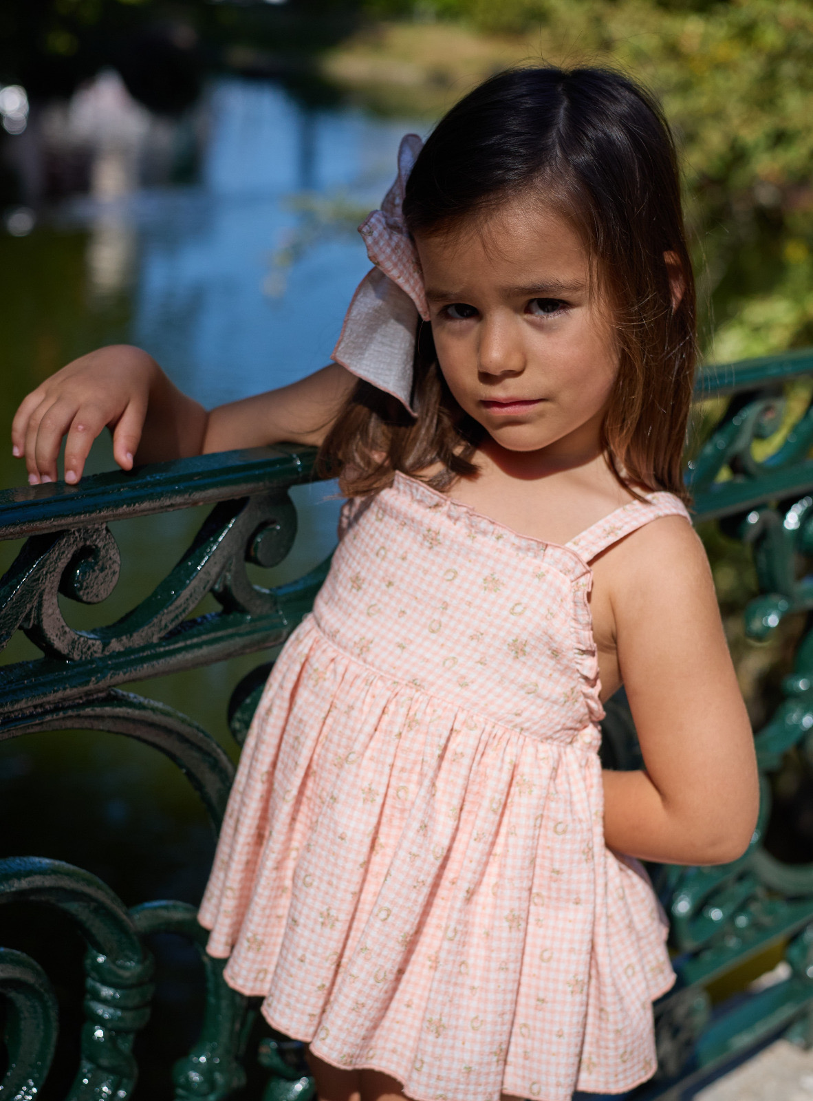 Ranita tirantes con pelele abajo en tejido vichy con liberty