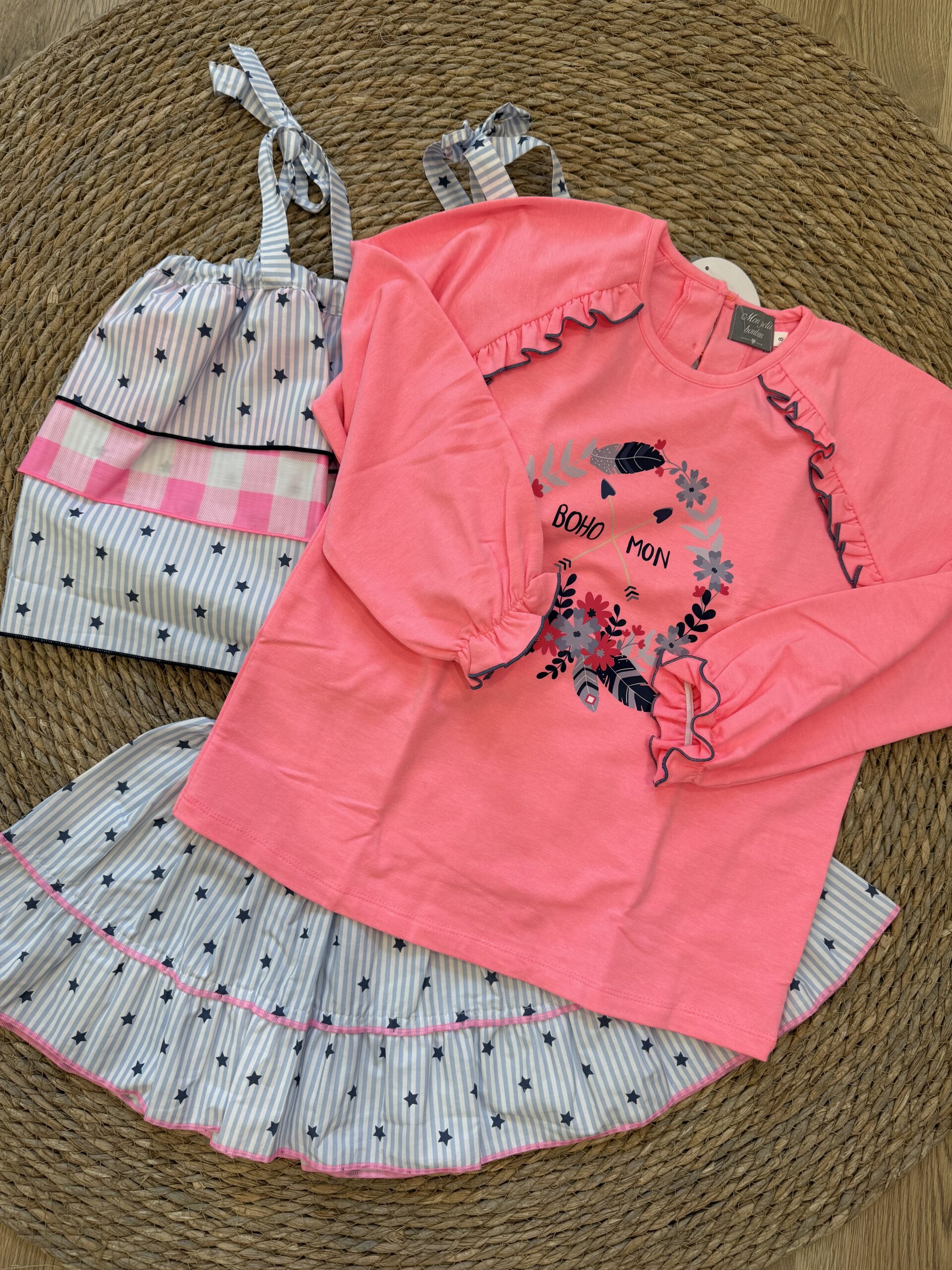No Sudadera de felpa rosa fluor colección de estrellas con estampación en el pecho flores en corona